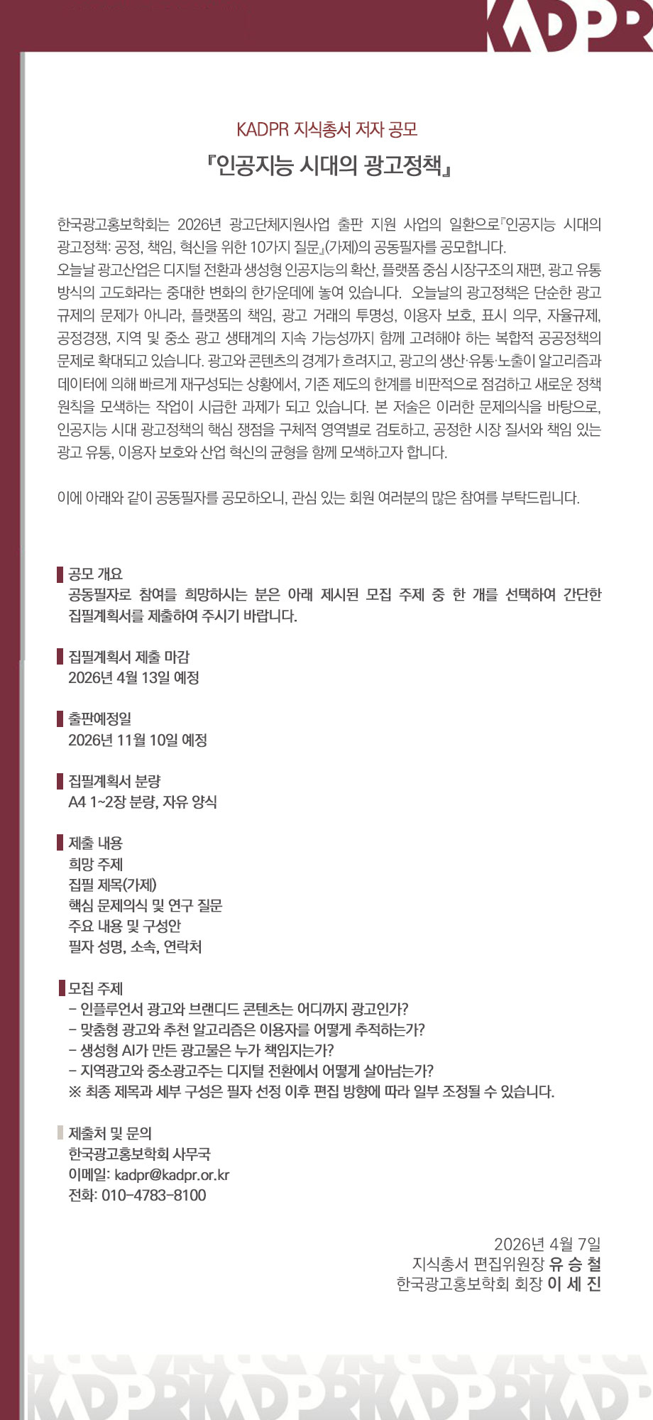 [KADPR] 광고연구 제149호 논문 모집 공고