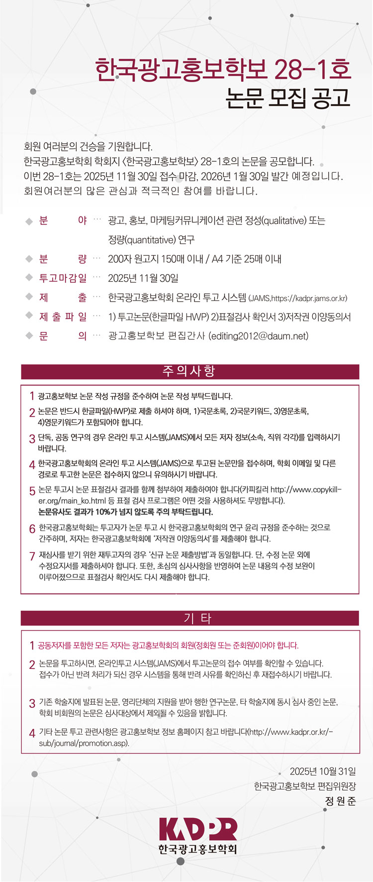 [KADPR]한국광고홍보학보 28-1호 논문 모집 공고