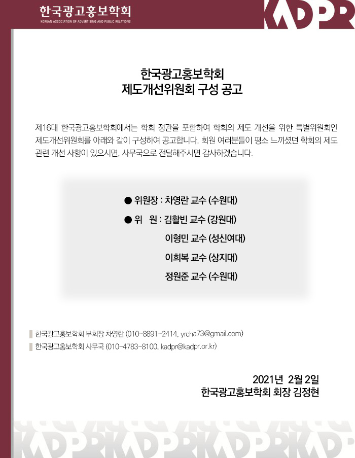 [KADPR] 한국광고홍보학회 제도개선위원회 구성 공고