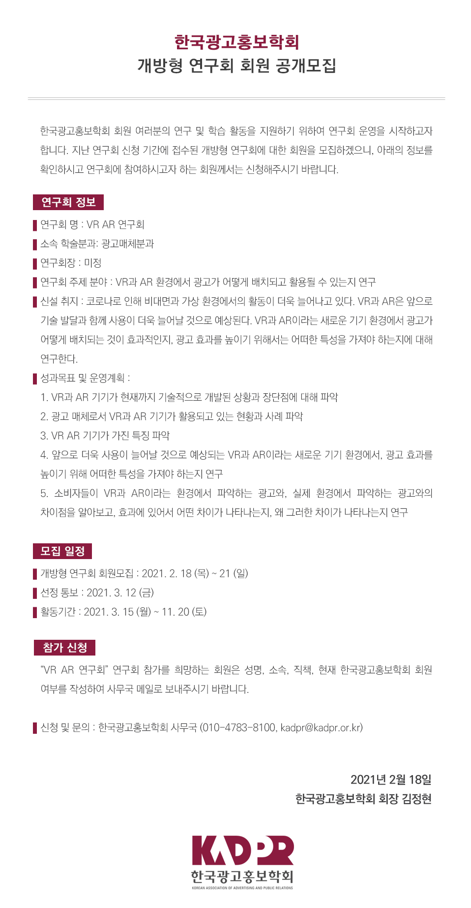 [KADPR] <한국광고홍보학보> 제23-2호 논문 모집 재공고