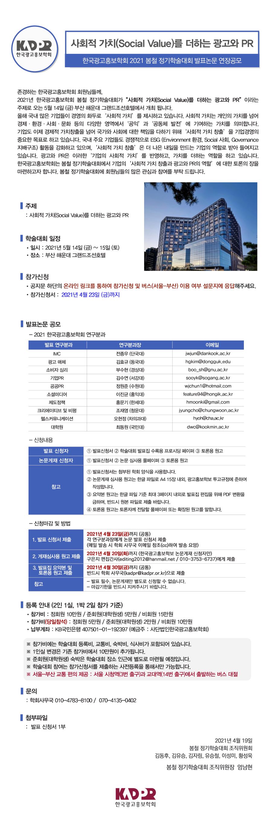 [KADPR] 2021년 봄철학술대회 발표신청 기한 연장 공고(~4/23까지)