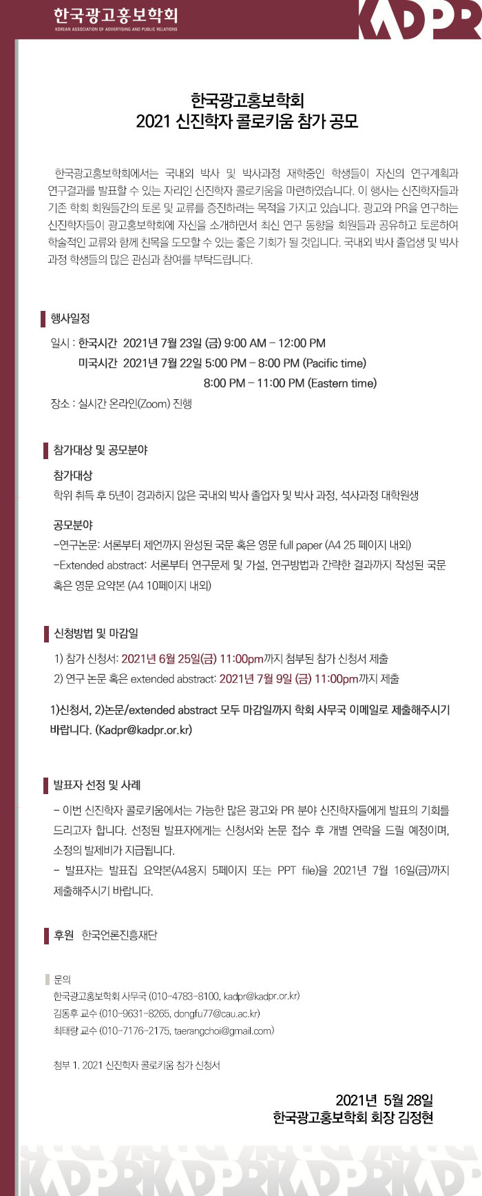 [KADPR] 2021 신진학자 콜로키움 참가 공모