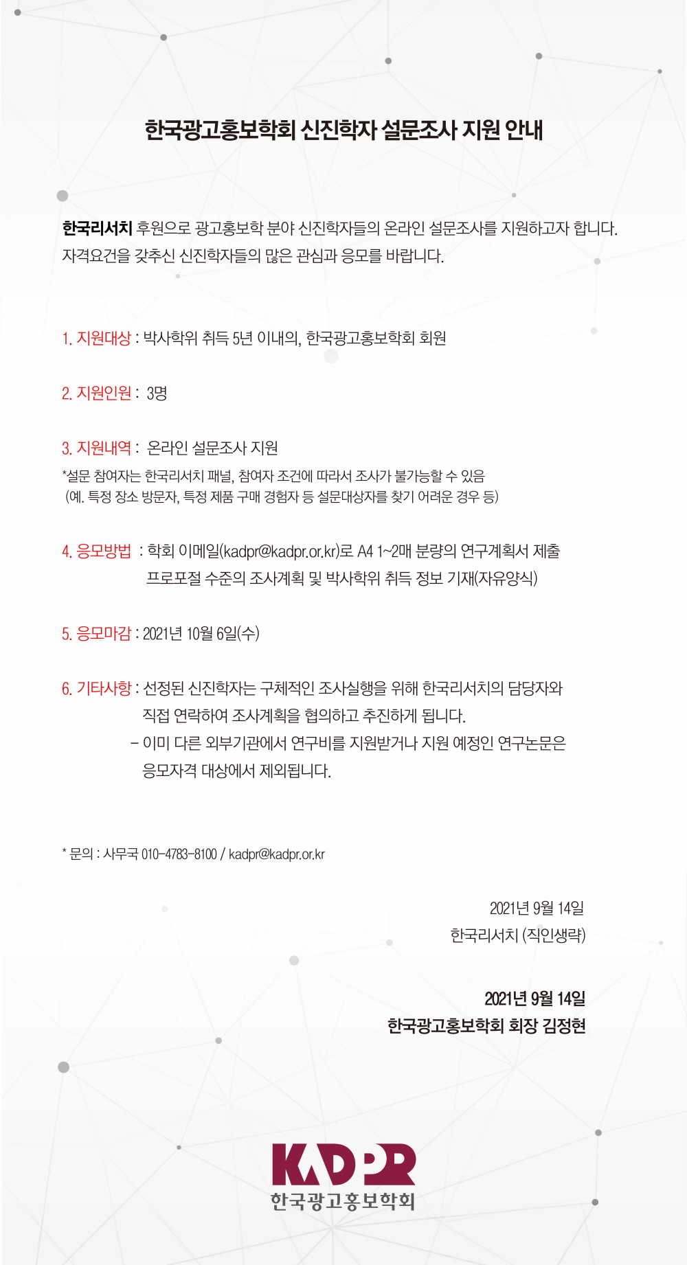 [KADPR] 한국광고홍보학회 신진학자 설문조사 지원 안내