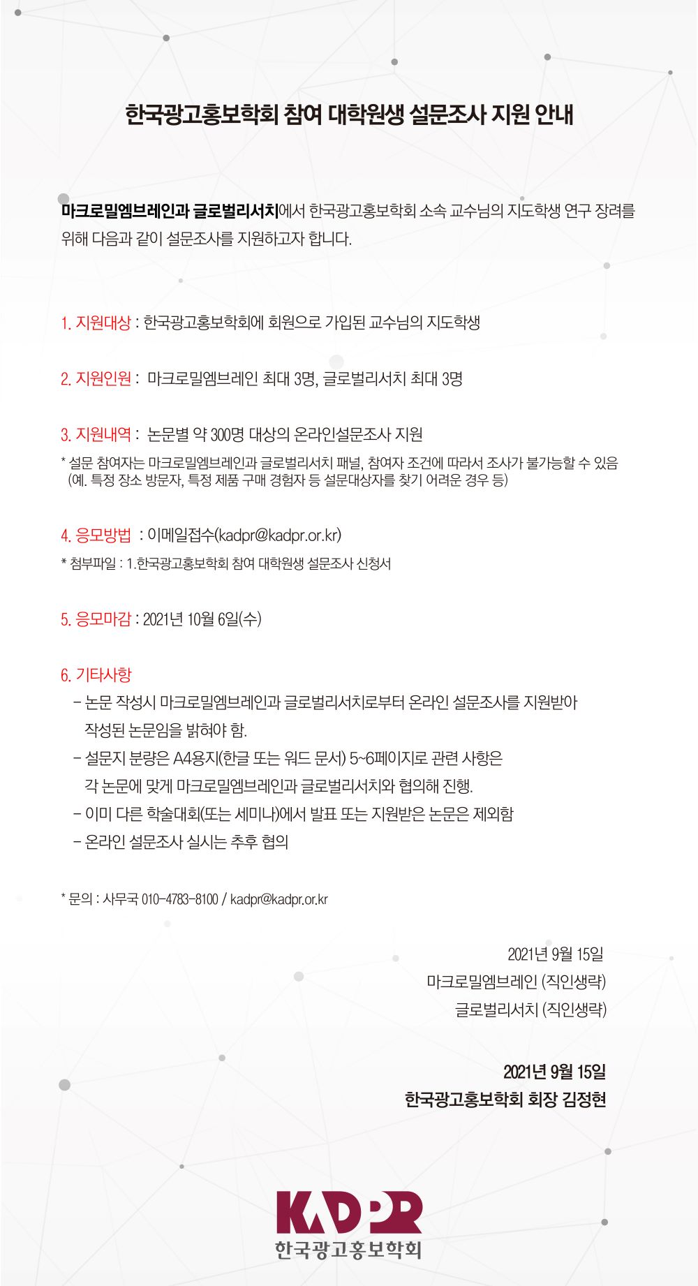 [KADPR] 한국광고홍보학회 참여 대학원생 설문조사 지원 안내