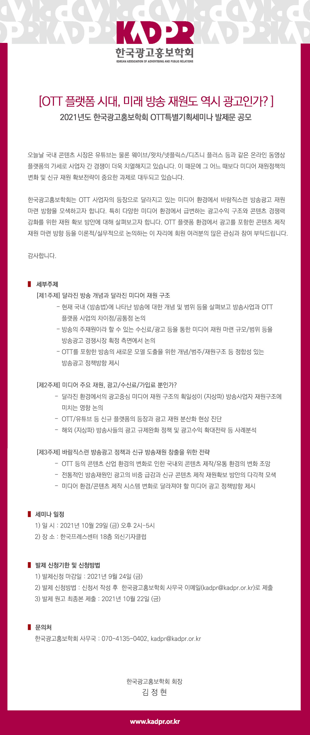[KADPR] OTT특별기획 세미나 발제문 공모