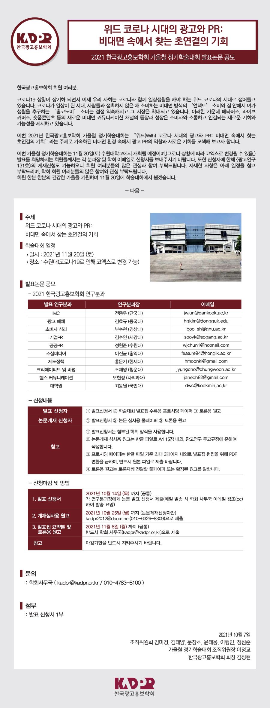 [KADPR] 2021년 가을철 정기학술대회 발표논문신청 기한 연장 공고(~10/14까지)