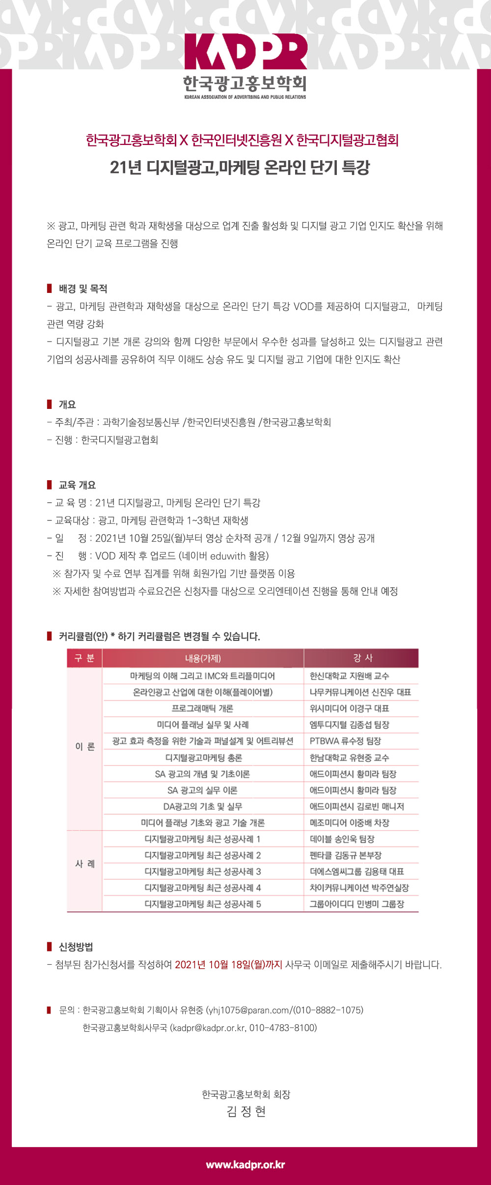 [KADPR] 21년 디지털광고, 마케팅 온라인 단기 특강 안내