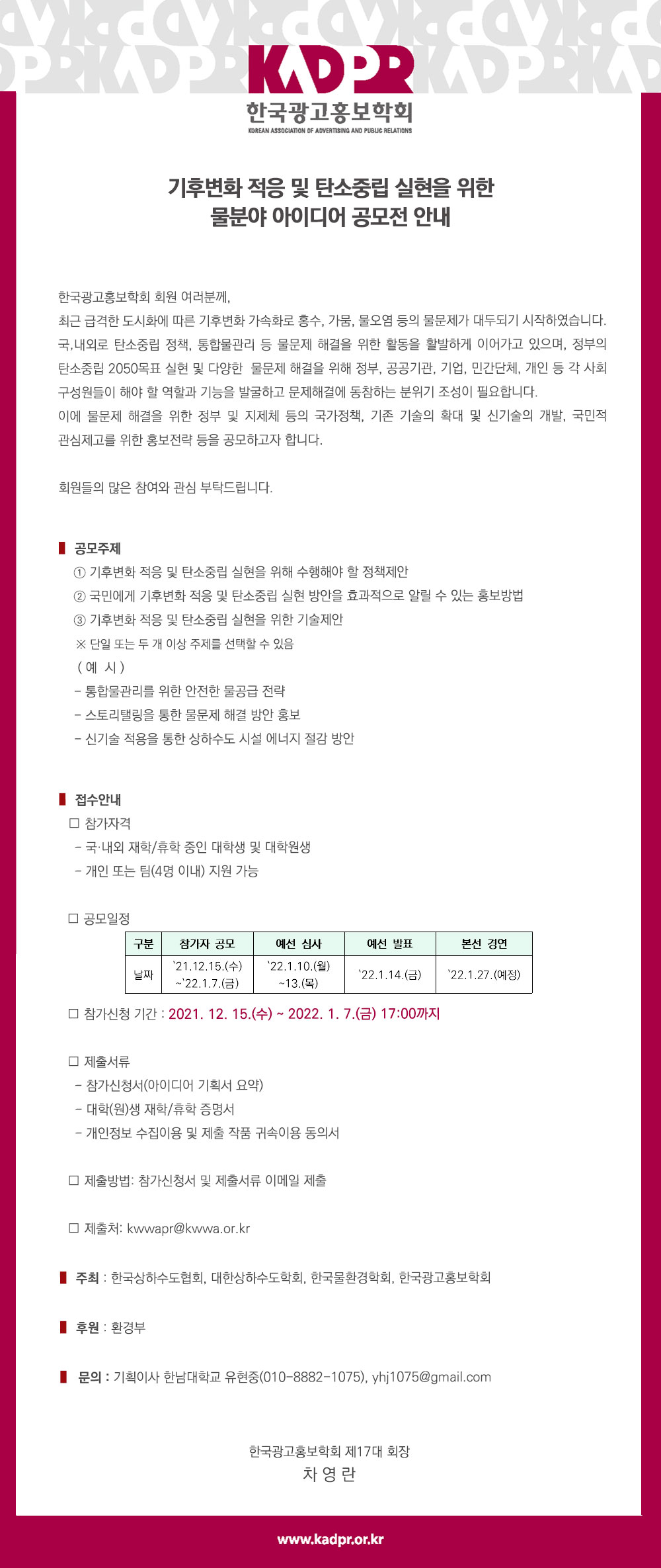[KADPR] 기후변화 적응 및 탄소중립 실현을 위한 물 분야 아이디어 공모전 안내