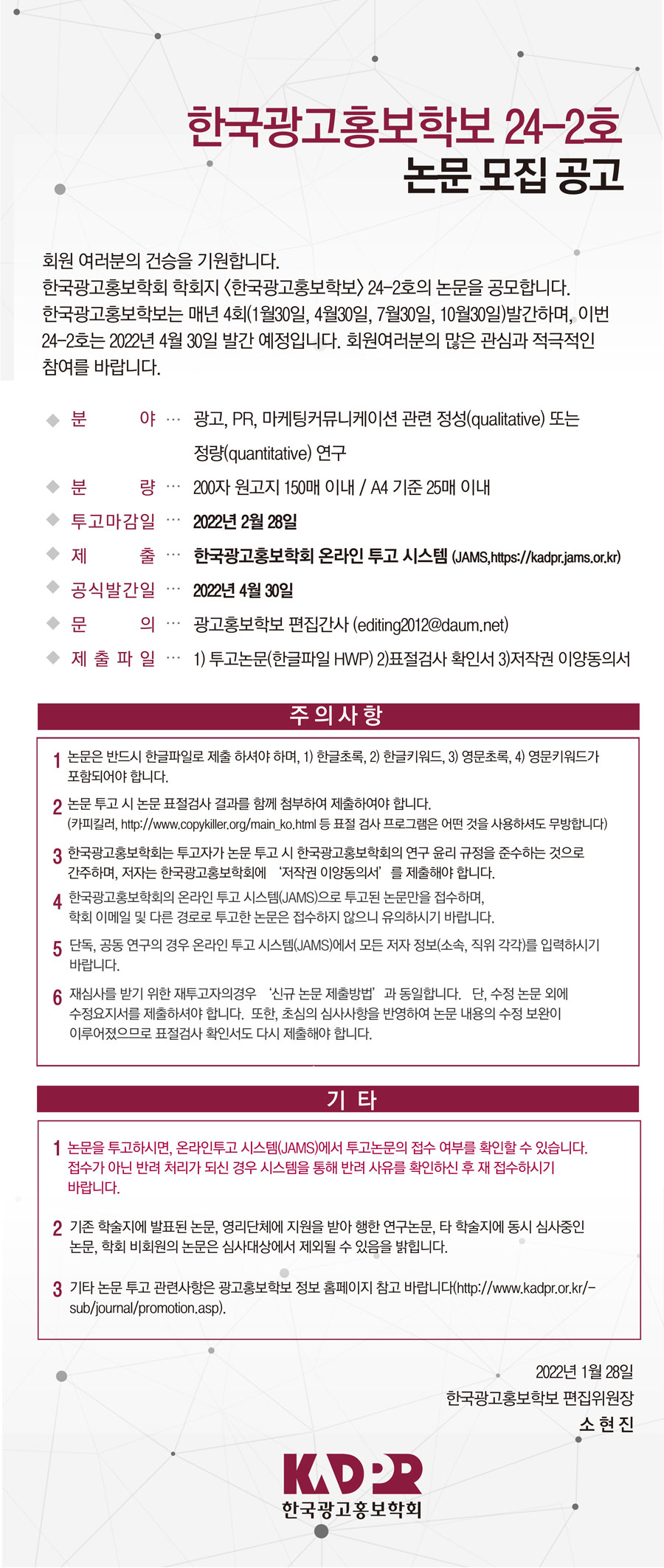 [KADPR] 한국광고홍보학보 24-2호 논문 모집 공고