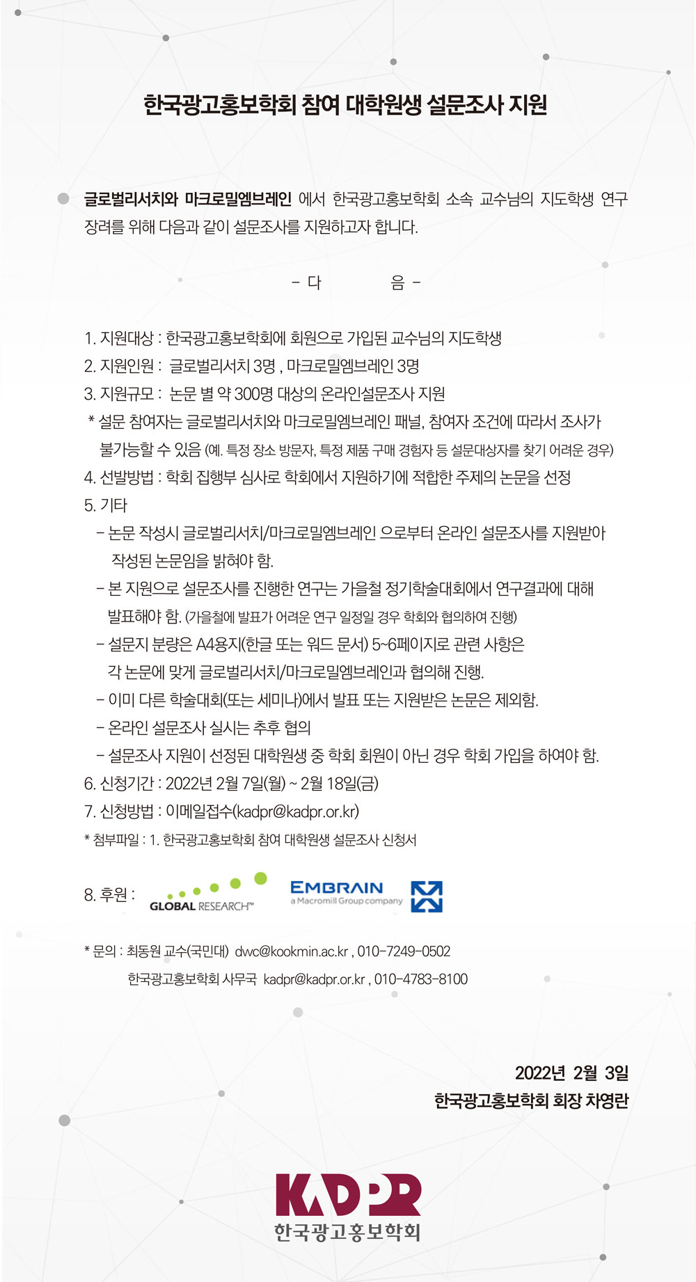 [KADPR] 한국광고홍보학회 참여 대학원생 설문조사 지원