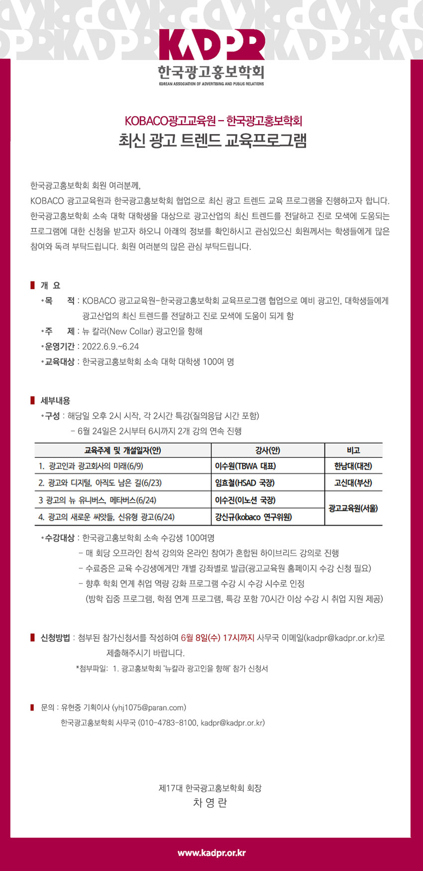 [KADPR] 최신광고 트렌드 교육 프로그램 '뉴 칼라 광고인을 향해' (KOBACO광고교육원-한국광고홍보학회)