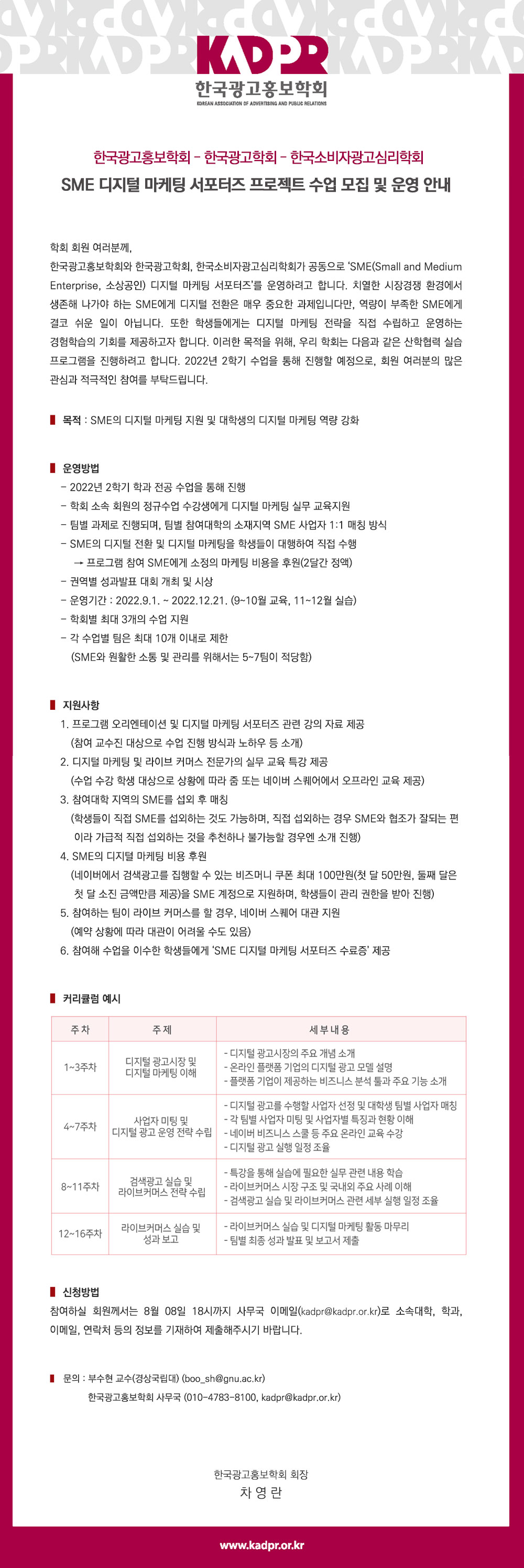 [KADPR] SME 디지털 마케팅 서포터즈 프로젝트 수업 모집 및 운영 안내